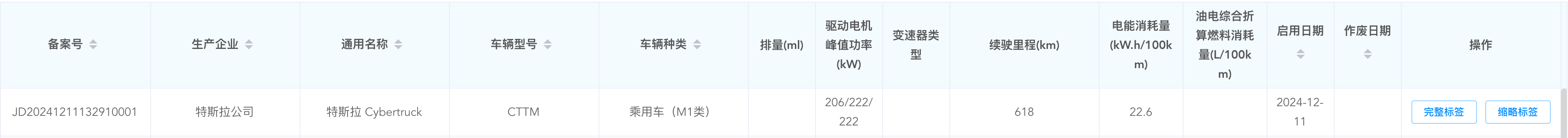Cybertruck现身工信部,能源消耗申报续航里程达618km